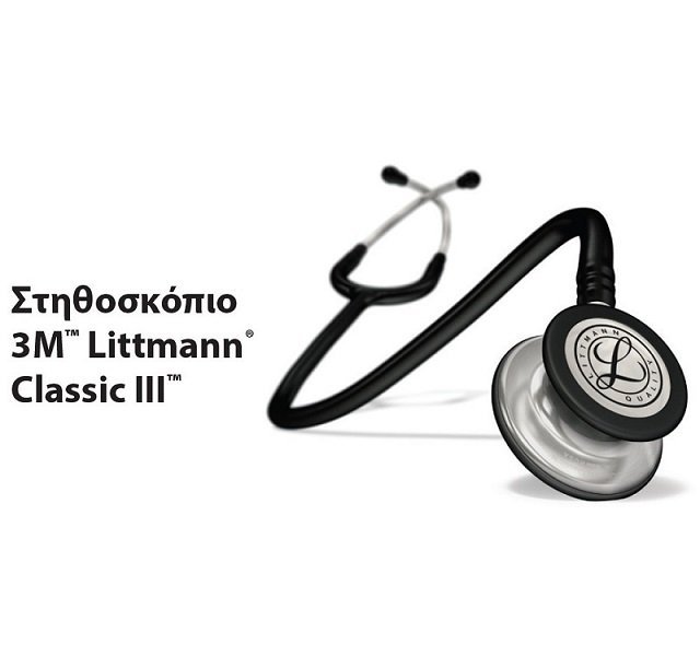 Το Στηθοσκόπιο 3M™ Littmann® Classic III™ αποτελεί την πιο πρόσφατη έκδοση του στηθοσκοπίου που ήδη βοηθάει εκατομμύρια επαγγελματίες υγείας να έχουν τα καλύτερα δυνατά αποτελέσματα. Το στηθοσκόπιο Classic III παρέχει υψηλή ακουστική ευαισθησία για εξαιρετικές επιδόσεις και έναν ευέλικτο κώδωνα δύο όψεων με συντονιζόμενα διαφράγματα. Το στηθοσκόπιο Classic III χρησιμοποιείται και από φοιτητές και από επαγγελματίες υγείας, προκειμένου να εντοπίζουν, να ακούν και να μελετούν τους καρδιακούς, πνευμονικούς και άλλους ήχους του οργανισμού για αξιολόγηση της φυσικής κατάστασης, παρακολούθηση του ασθενούς, καθώς και διάγνωση. Η τεχνολογία συντονιζόμενου διαφράγματος – μία ευρεσιτεχνία της 3M – επιτρέπει στους επαγγελματίες υγείας να ακούν ήχους διαφορετικών συχνοτήτων, ρυθμίζοντας απλώς την πίεση στον κώδωνα. Κρατήστε τον κώδωνα ασκώντας ελαφρά πίεση για να ακούσετε ήχους χαμηλής συχνότητας και πιέστε λίγο περισσότερο για να ακούσετε ήχους υψηλότερης συχνότητας. Αυτό το χαρακτηριστικό εξοικονομεί χρόνο και δίνει στον πάροχο υπηρεσιών υγείας τη δυνατότητα να επικεντρωθεί στον ασθενή, ενώ παράλληλα η στεφάνη που δεν παγώνει εξασφαλίζει την άνεση του ασθενούς. Η δύναμη τάσης των ακουστικών ρυθμίζεται εύκολα για το μέγεθος της κεφαλής και την επιθυμητή άνεση, πιέζοντας μαζί τους τα μεταλλικά μέρη των ακουστικών προς τα μέσα ή προς τα έξω. Οι μαλακές και εφαρμοστές ελιές προσαρμόζονται σε κάθε αυτί, για εξαιρετική ηχομόνωση και άνετη εφαρμογή. Οι ελιές εφαρμόζουν σταθερά στα άκρα των μεταλλικών μερών των ακουστικών και, για ασφάλεια, απαιτείται η καταβολή σημαντικής προσπάθειας για να αφαιρεθούν. Οι ανθεκτικοί αυλοί νέας γενιάς διατηρούν το σχήμα και την ευκαμψία τους ακόμα και όταν διπλωθούν σφικτά στην τσέπη. Παρέχουν μεγαλύτερη διάρκεια ζωής στο στηθοσκόπιο, λόγω της βελτιωμένης αντοχής στις λιπαρές ουσίες του δέρματος και στο οινόπνευμα, ενώ έχουν λιγότερες πιθανότητες συγκέντρωσης λεκέδων. Οι αυλοί νέας γενιάς δεν κατασκευάζονται από φυσικό ελαστικό λατέξ, κάτι που αποτελεί πλεονέκτημα για τους επαγγελματίες υγείας με ευαισθησία στο δέρμα και για τους ασθενείς τους. Παράλληλα, για να συμβάλλουν στην προστασία της υγείας του ανθρώπου και του περιβάλλοντος, οι αυλοί νέας γενιάς δεν περιέχουν φθαλικούς εστέρες. Το στηθοσκόπιο Classic III κατασκευάζεται στις ΗΠΑ, για την εξασφάλιση σταθερής ποιότητας. Περιλαμβάνει μεγάλες και μικρές ελιές μαλακής εφαρμογής, μεγάλες σκληρές ελιές, περίβλημα προστασίας από το «πάγωμα» και οδηγίες.