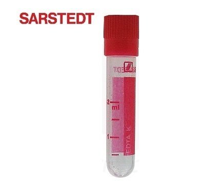 Σωληνάρια με αντιπηκτικό K3EDTA, ψεκασμένο ομοιόμορφα, Sarstedt Γερμανίας, 2ml, στρογγυλό πυθμένα και κόκκινο πιεστό πώμα, 55x12mm