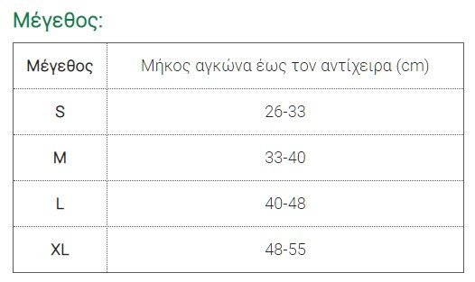 | Μέγεθος | Μήκος αγκώνα έως τον αντίχειρα (cm) |